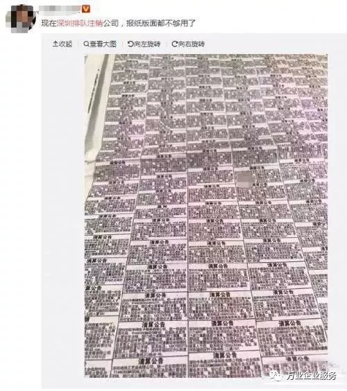 事實(shí)上,這個有點(diǎn)夸張了,被普遍轉(zhuǎn)發(fā)的上述圖片應(yīng)為深圳商報廣告版面,刊登各類公告、遺失聲明、啟示等。版面上的確以清算公告居多,但一直如此,并非新情況。