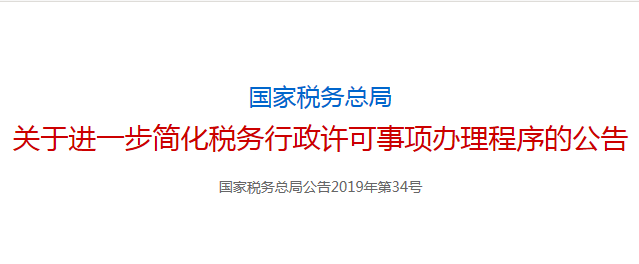 稅務(wù)總局發(fā)文進(jìn)一步簡(jiǎn)化稅務(wù)行政許可事項(xiàng)辦理程序,12月1日起施行(2019-10-23)