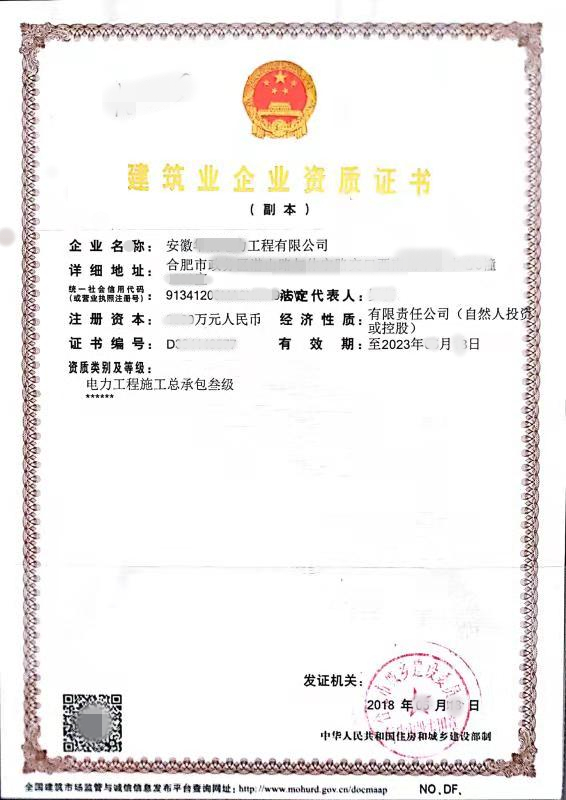 名稱:建筑企業(yè)資質(zhì)證書