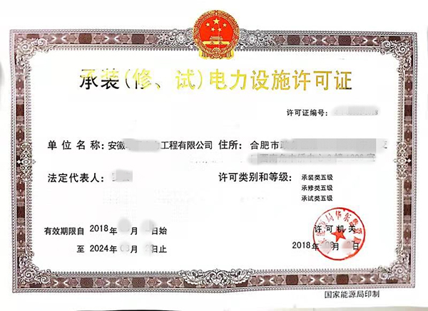 名稱(chēng):承裝(修、試)電力設(shè)施許可證(承裝五+承修五+承試五)